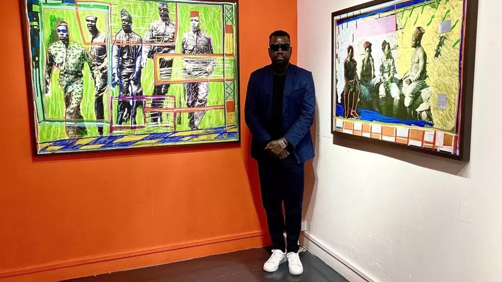 Yacine’s personal migration story – from West Africa to North America – underpins much of this work. His art often charts a journey that mirrors his own: “the story of an upbringing by a colonialist culture in a native land and the paths taken away from it, both inwardly and outward,” as he writes in one artist statement. Rather than lament displacement, Yacine approaches the diaspora experience with a spirit of joie de vivre, finding creative energy in the act of bridging cultures. In his canvases, he layers imagery from Senegal alongside references to American and European culture, creating rich palimpsests of photos, painted symbols, and even African masks that speak to a hybrid identity. The 2024 series “Black Venezia” pushed this inquiry into new territory: during a residency in Venice, Yacine examined centuries-old Venetian paintings and architecture to “unveil the presence of Black individuals” in that Renaissance city – people often hidden in plain sight in European art as servants, merchants or enslaved figures. The resulting works, exhibited in Paris as Black Venezia, carry a “deep historical genealogy” of Blackness in Europe, connecting Yacine’s own Atlantic heritage to the Mediterranean context of Venice. In this way, Yacine’s recent projects map a kind of Black Atlantic world, tracing lines of connection from Africa to America to Europe. His art insists that the postcolonial Black identity is not bound by one locale but is truly global – a mosaic of migrations, memories, and resilient cultural expressions.