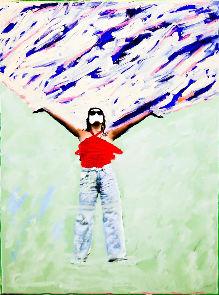 Materials play a symbolic role in Yacine’s practice. He has been known to incorporate unorthodox supports like burlap, denim, and cardboard, integrating everyday materials that speak to both poverty and creativity. In some works he has collaged vintage photographs, textiles, or even vinyl records (as in pieces honoring musical icons like Jimi Hendrix) as a way to infuse the work with cultural memory. The surface of the painting becomes a site of performance and storytelling: Yacine’s physical act of cutting, pasting, and painting is itself a gesture of reclaiming space. Notably, by cutting window-like openings or removing sections of the painted canvas, he exposes the raw wooden stretcher underneath – a bold statement about seeing what usually remains hidden. In A Postcolonial Landscape, these cut-outs “signify the absence of Blackness in the history of painting”, a literal void in the picture that forces the viewer to confront who has been left out. Such narrative strategies demonstrate Yacine’s scholarly undercurrent; he is deliberately dialoguing with art history and social history in the very construction of his images. Yet the work never feels didactic – its vibrant colors, improvisational textures, and even touches of pop culture flair (album covers, graffiti tags, etc.) invite viewers of all backgrounds to engage. Yacine’s art is intellectually layered but visually immediate, using color and form to draw people into a conversation about identity, history, and hope.